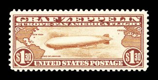 1034 nh C14 image#C14, $1.30 Graf Zeppelin, exceedingly well centered within large balanced margins, rich color, o.g., n.h., extremely fine and choice. (Image) $700.00